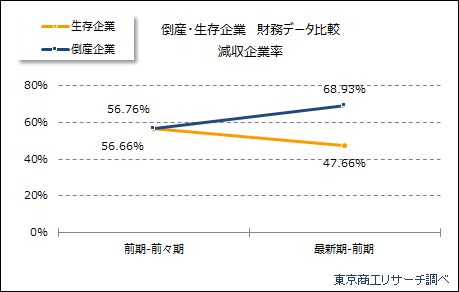 倒産企業は売上不振が続く、約7割が減収