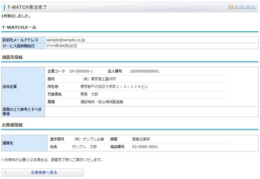 企業検索結果内の「T-WATCH」をクリックします。